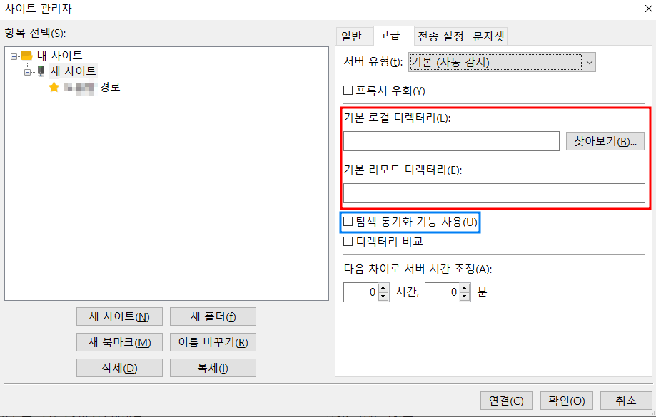 2. 원격 서버 연결하기 [사이트관리자 설정]