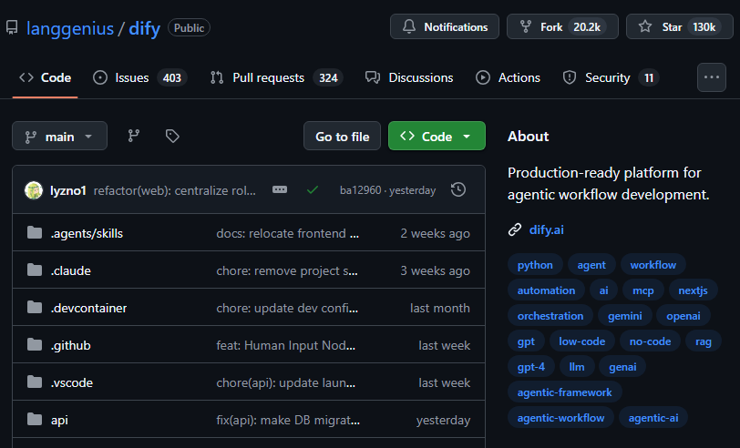 GitHub - langgenius/dify: Production-ready platform for agentic workflow development.