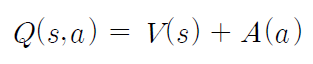 여기서 advantage function A(a)는 해당 state에서 가능한 action 중에서 해당 action이 얼마나 좋은지를 평가하며, Q(s,a)는 V(s)와의 합으로 구할 수 있습니다. (value function V(s)는 해당 state가 얼마나 좋은지 평가. 즉, 가능한 action들의 reward 평균으로 볼 수 있음)