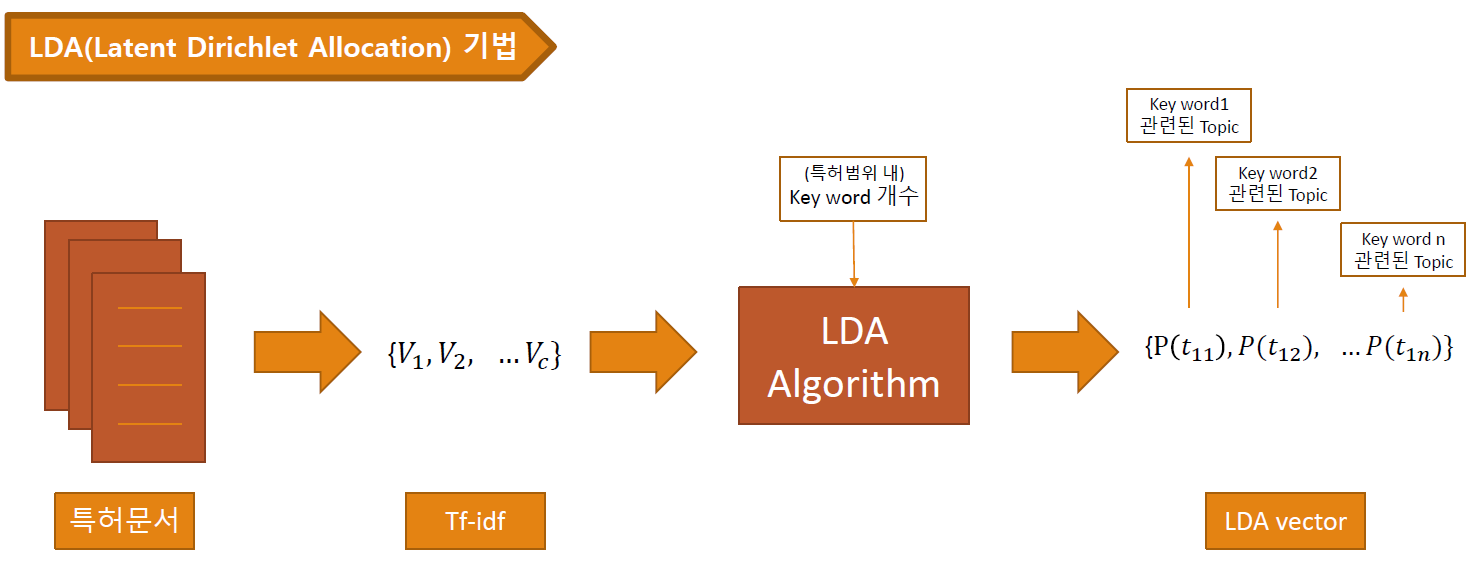 LDA는 토픽 모델링 기법 중 하나로, 특정 문서들의 중요 토픽들과 관련된 키워드를 찾을 수 있습니다.