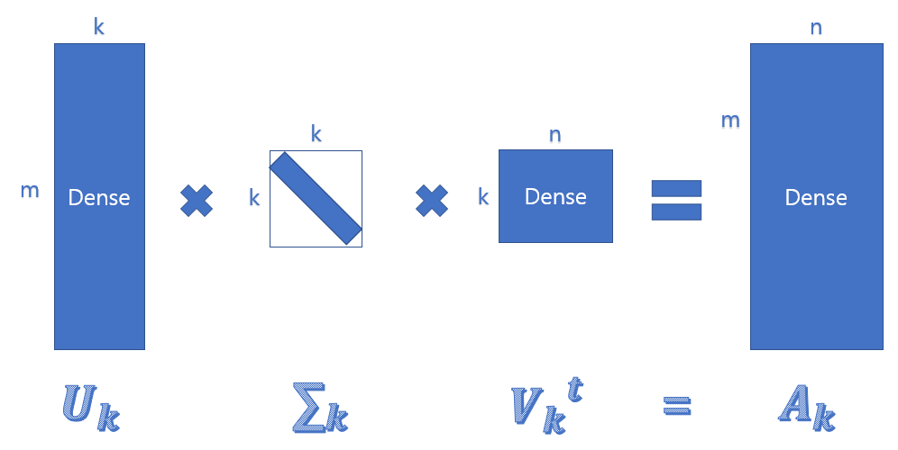 따라서 Truncated SVD를 사용하여, 꼭 필요한 중요 토픽만 구하여 계산비용도 줄이고, 필요 없는 노이즈 데이터도 제거합니다. Truncated SVD는 SVD에 차원 축소 개념이 추가된 방법입니다.