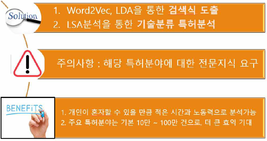 - 어려운 특허분석을 자연어 처리기법을 이용해서 쉽고 빠르게 해결