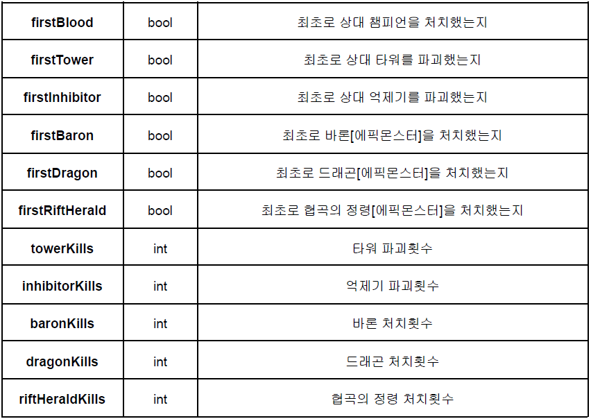 그 외의 수치도 승리팀이 패배팀보다 높았습니다.