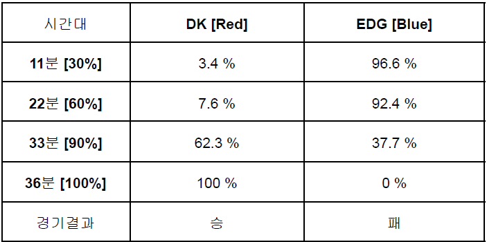 선수가 어떤 플레이를 했을 때, 승률이 오른다면 해당 플레이는 Positive 하며 어떤 승리 목표를 가진 게임인지 대략 짐작할 수 있게 됩니다. 또한 선수들의 플레이 하나하나마다 역동적으로 변하는 예상 승률을 통해서 극적인 긴장감도 부여할 수 있습니다.