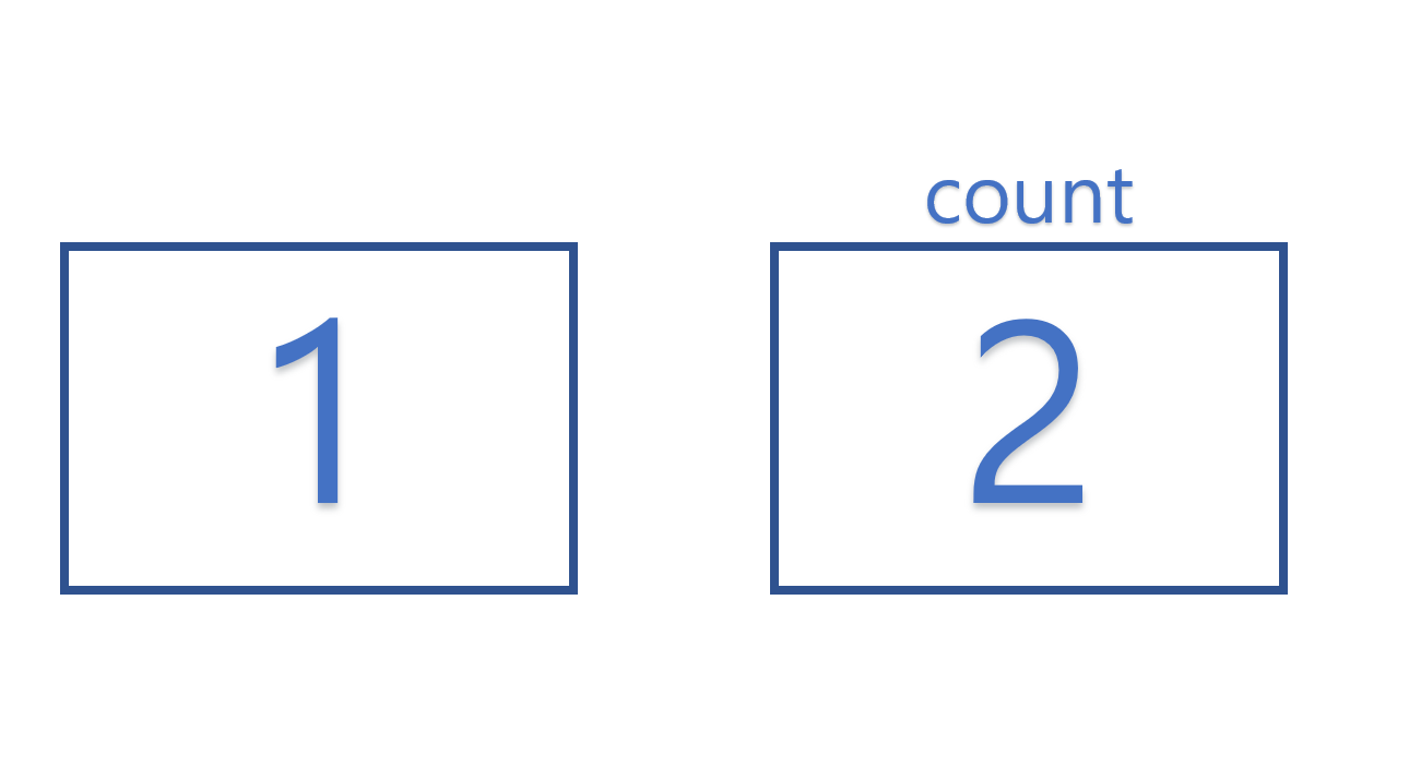 값을 지우지 않기 때문에, 1은 그대로 남아있고 나중에 재사용할 수 있습니다. 만약에 count = 2라고 지정하면, 다시 2가 저장된 메모리를 가리킬 것입니다.