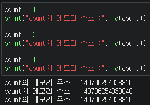 print("count의 메모리 주소 :", id(count))
