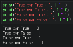 XOR 연산은 같으면 False, 다르면 True입니다.