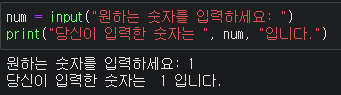 input함수에 사용자에게 입력을 안내할 문구도 추가할 수 있습니다. 타 언어에서는 print 함수를 따로 써서 안내해야했지만, input함수는 그 기능까지 포함하고 있습니다.