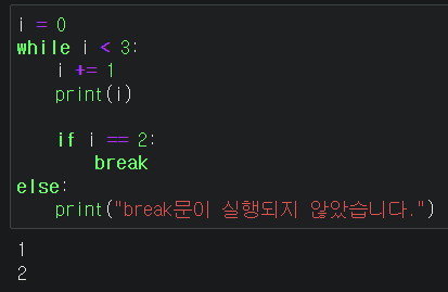 만약 break문이 작동했다면, else문은 실행되지 않습니다.