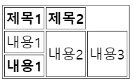 <tr><td>내용1</td><td rowspan="2">내용2</td><td rowspan="3">내용3</td></tr>