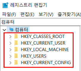 | HKEY_CURRENT_USER | 현재 로그인한 사용자에 대한 정보 (로그아웃 시 삭제) |