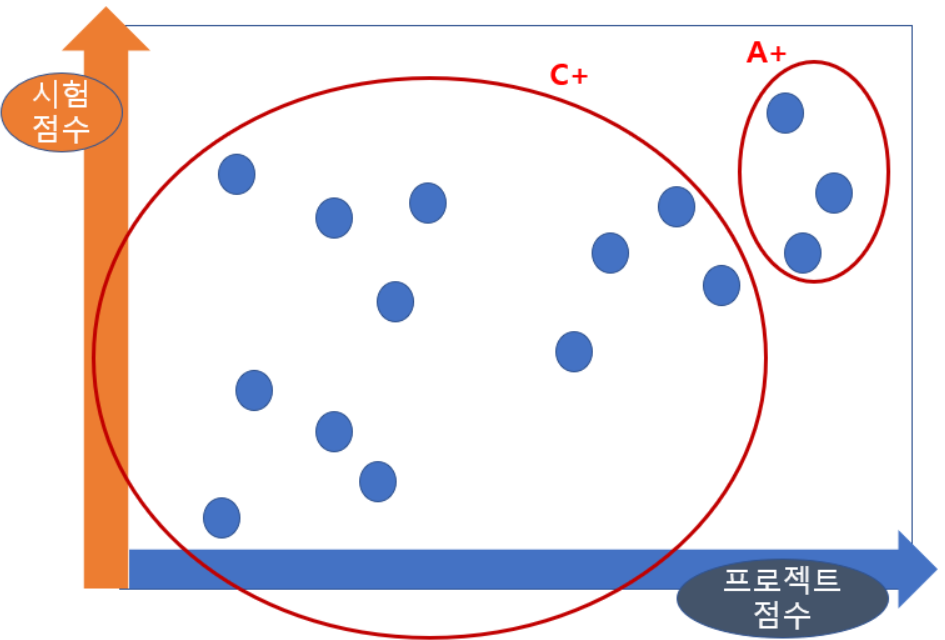 비지도 학습에는 대표적으로 '클러스터링'이 있습니다. 클러스터링은 비슷한 속성을 가진 데이터들을 그룹 짓습니다. 클러스터링의 결과는 위 그림처럼 여러 가지가 나올 수 있으며, 분석자가 마음에 드는 결과를 선택합니다.